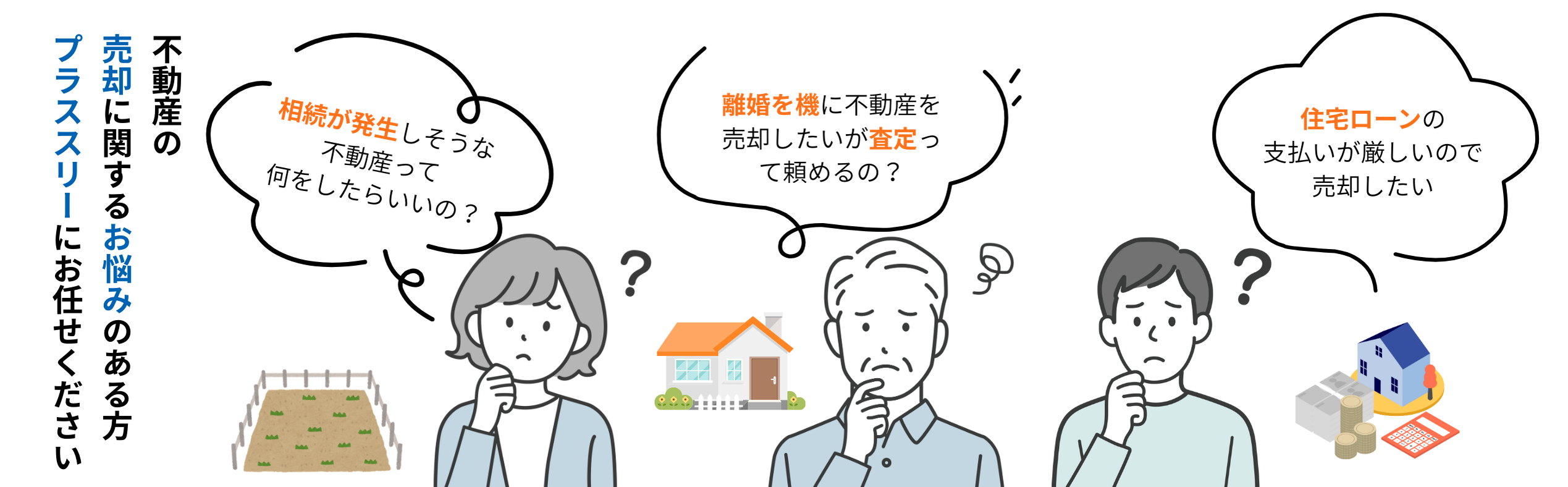 プラススリーでは、不動産の売却、購入にかかわるご相談をお聴きしています。